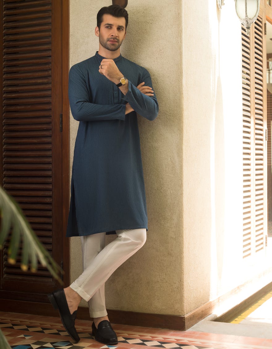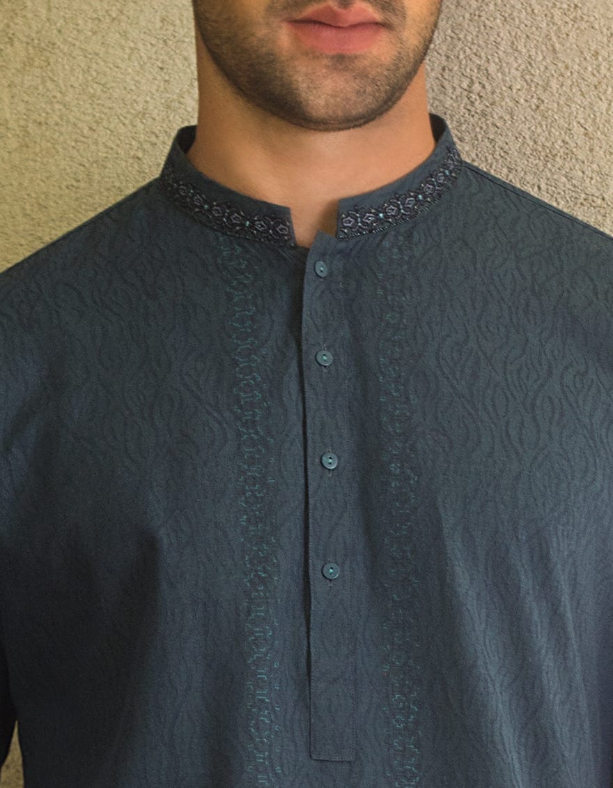 | Short Description | Semi-Formal Kurta For Men With Computerized Machine Embroidery & Screen Print On Collar, Placket & Front. |