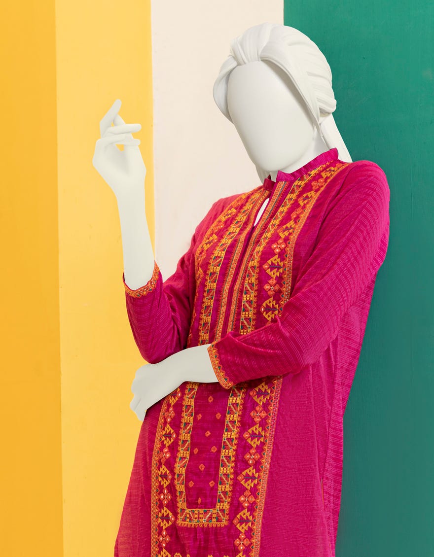 Additional Information: Vibrant Colored Hand-Woven Kurti, Embellished With Sheesha & Delicate Threadwork