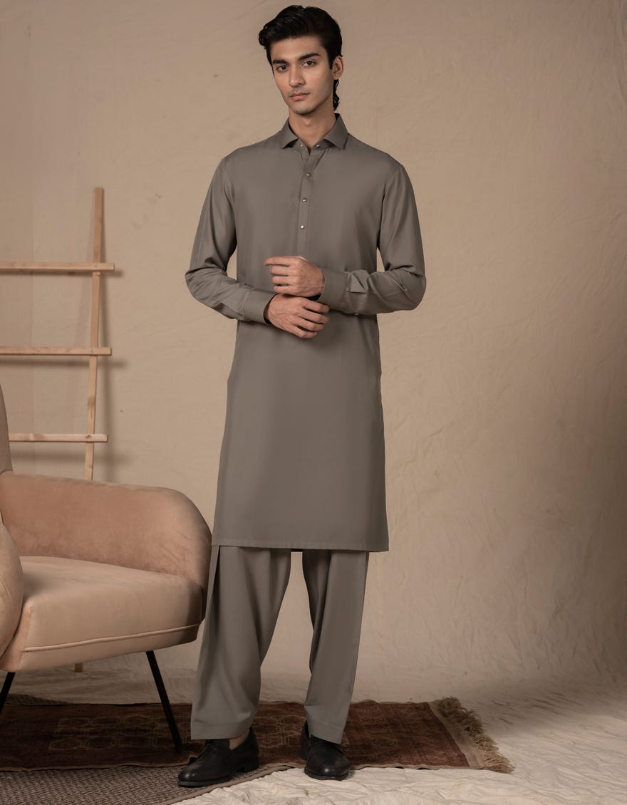 CEMENT GREEN BLENDED KAMEEZ SHALWAR | JJKS-A-33127