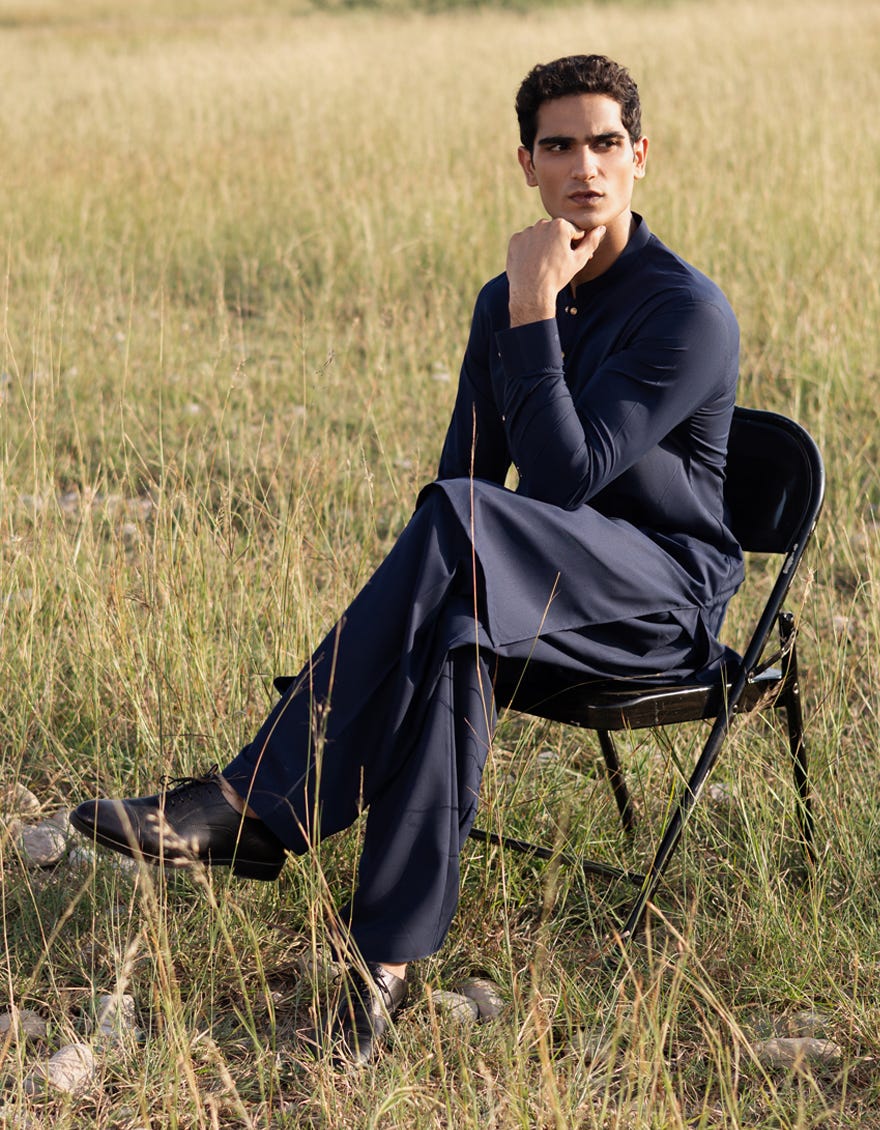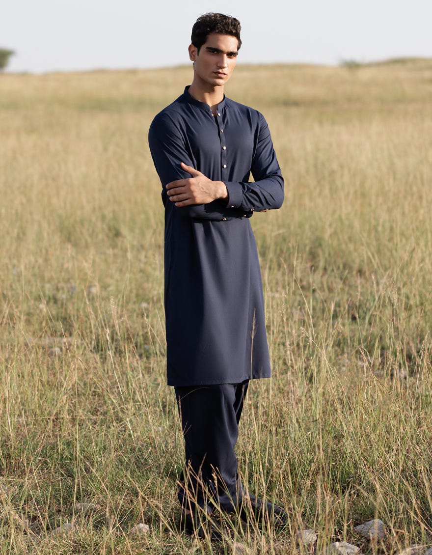 NAVY BLUE BLENDED KAMEEZ SHALWAR | JJKS-A-47356
