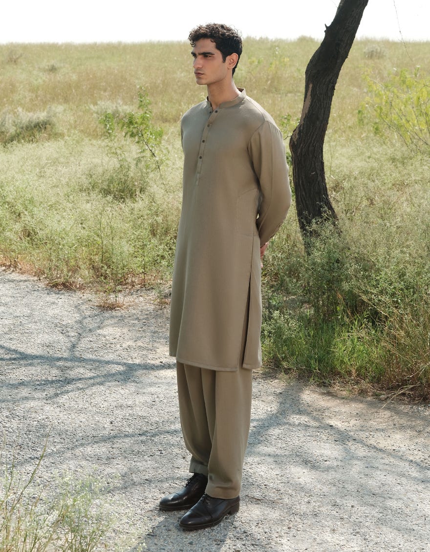 OLIVE BLENDED KAMEEZ SHALWAR | JJKS-W-33164