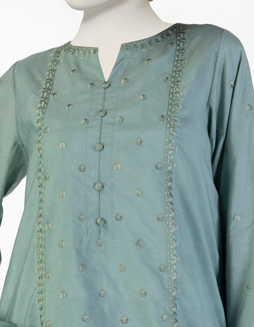 GREEN COTTON SILK EMBROIDERED 3PC STITCHED