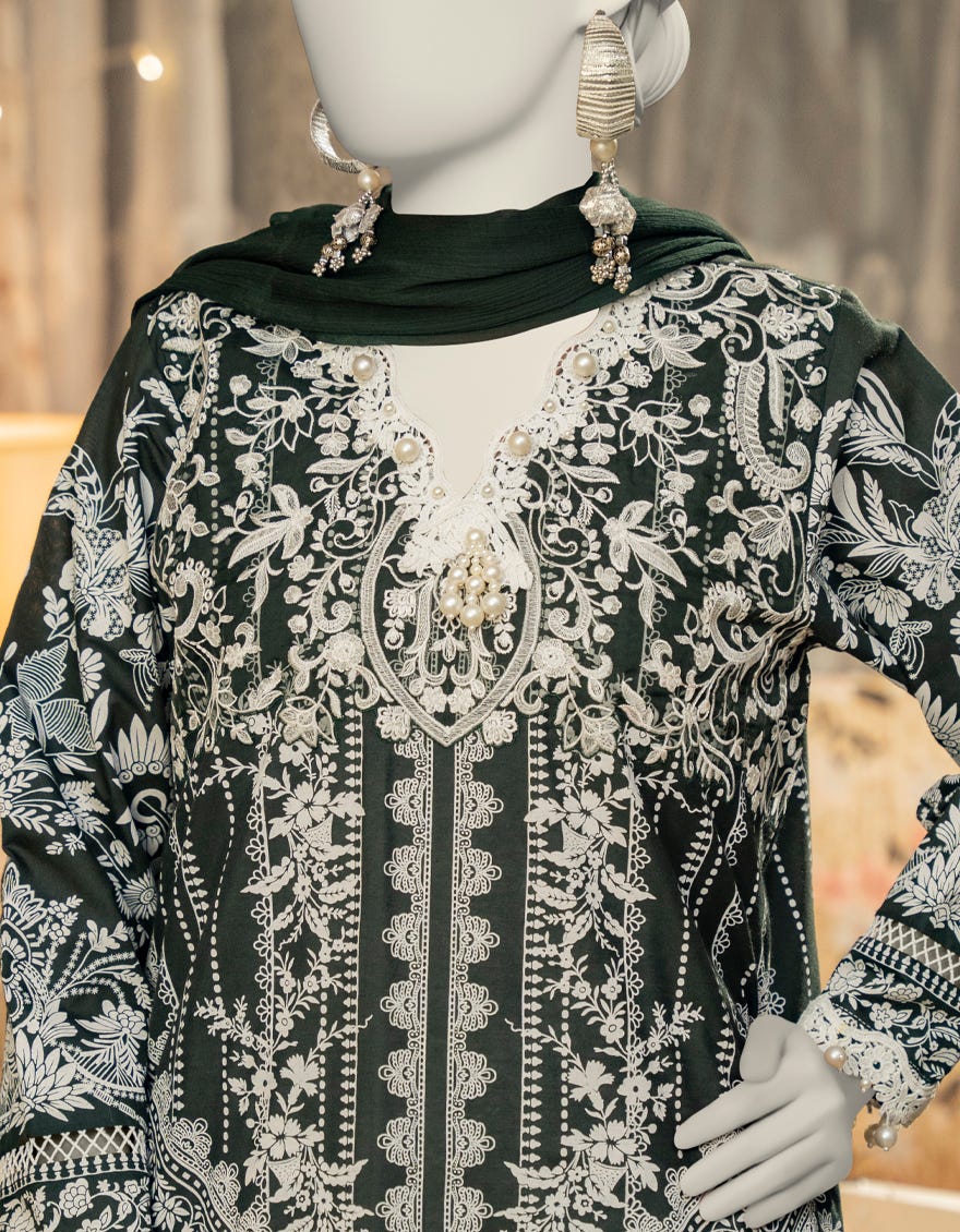 GREEN COTTON SILK EMBROIDERED 3PC STITCHED