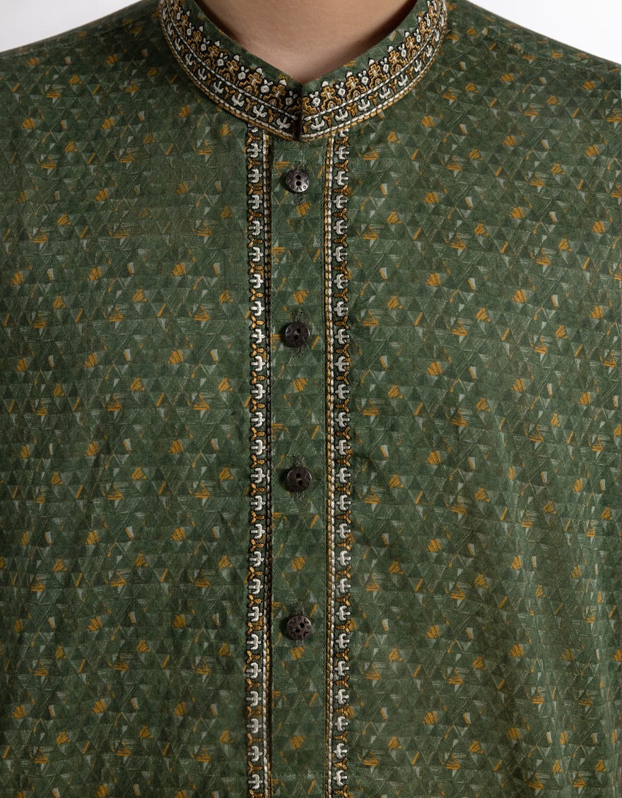 Short Description Introducing our kid boys' green cotton kurta, crafted with comfort in mind for your little ones. Let them explore and play in style with our comfortable and stylish kurtas.