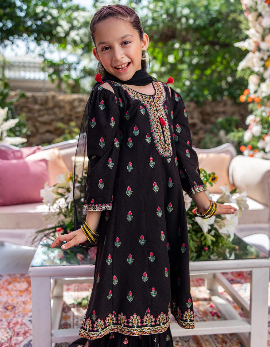 BLACK COTTON DOBBY EMBROIDERED 3PC STITCHED