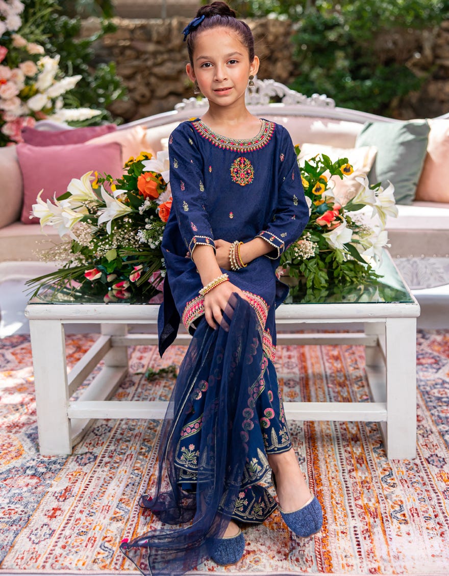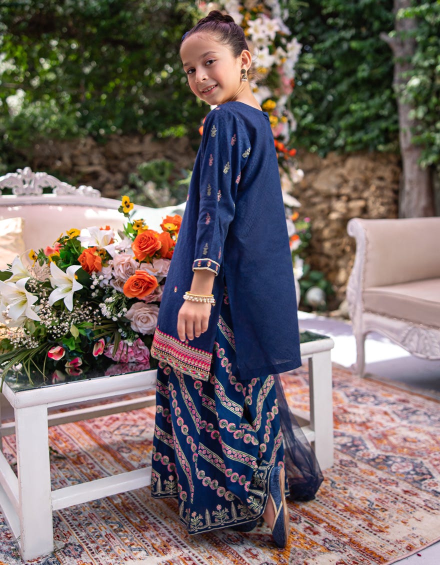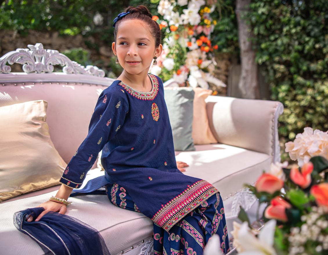 BLUE COTTON EMBROIDERED 3PC STITCHED