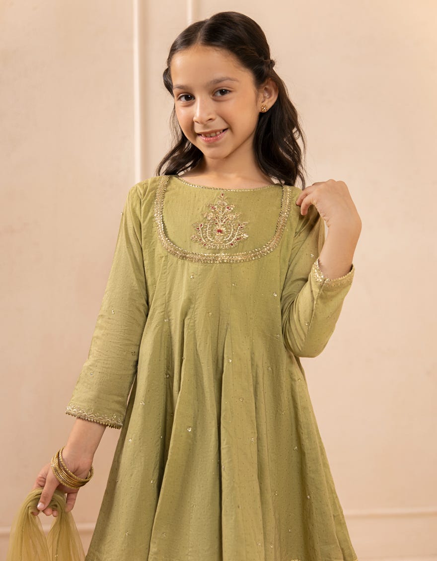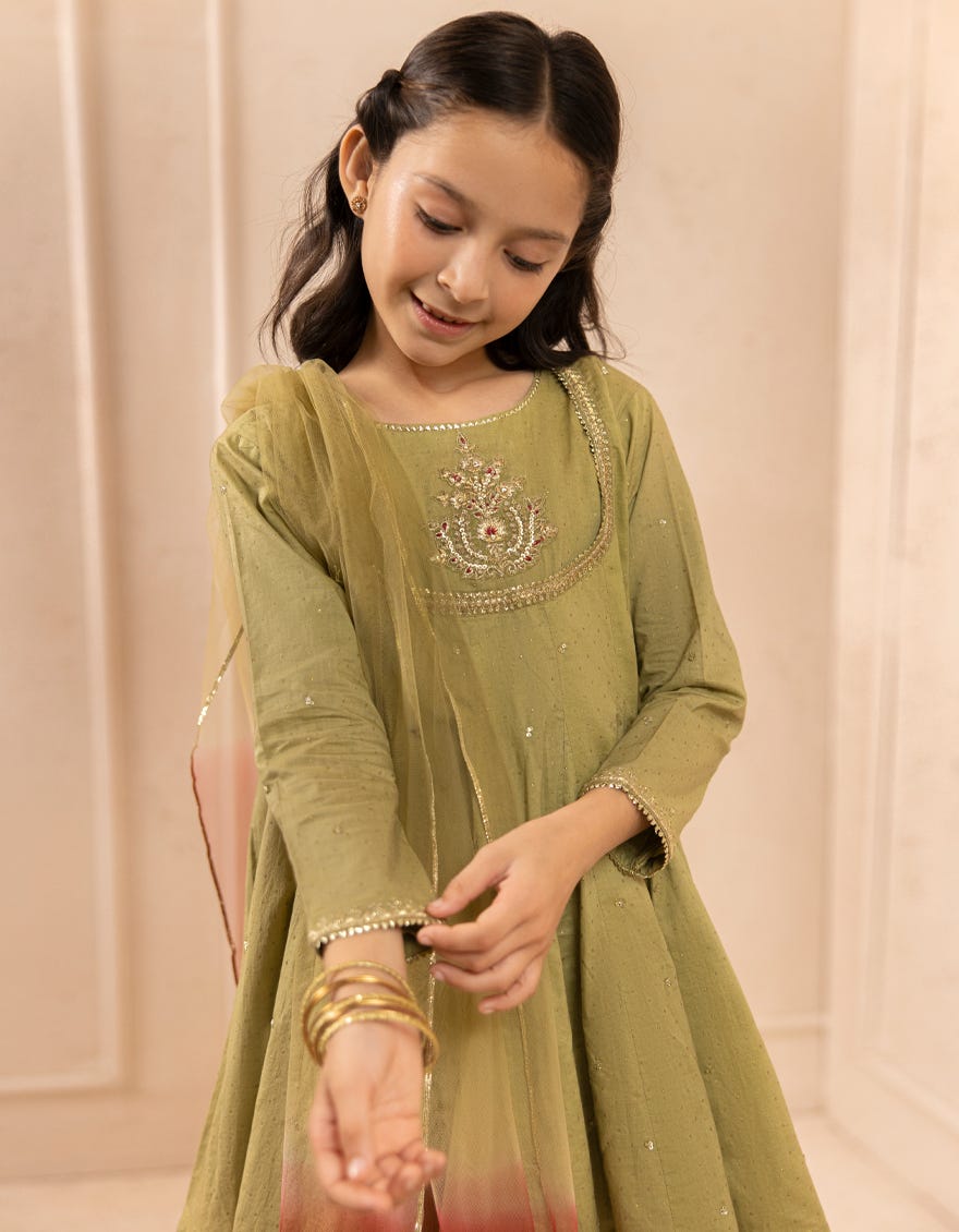 GREEN LAWN SILK EMBROIDERED 3PC STITCHED