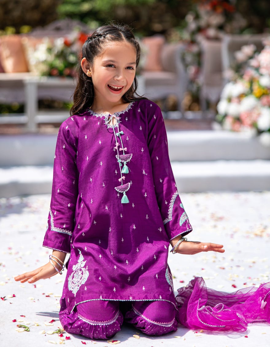 MAGENTA RAW SILK EMBROIDERED 3PC STITCHED