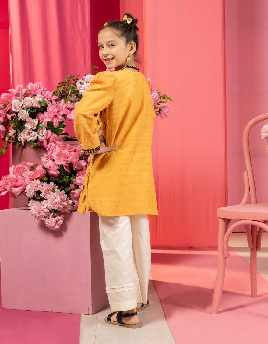 MUSTARD KHADDAR EMBROIDERED KURTI