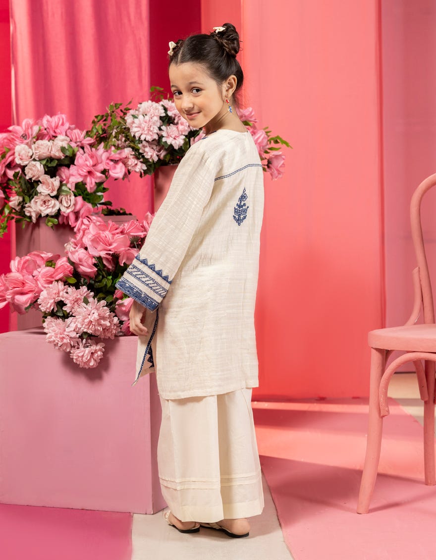 OFF WHITE KHADDAR EMBROIDERED KURTI