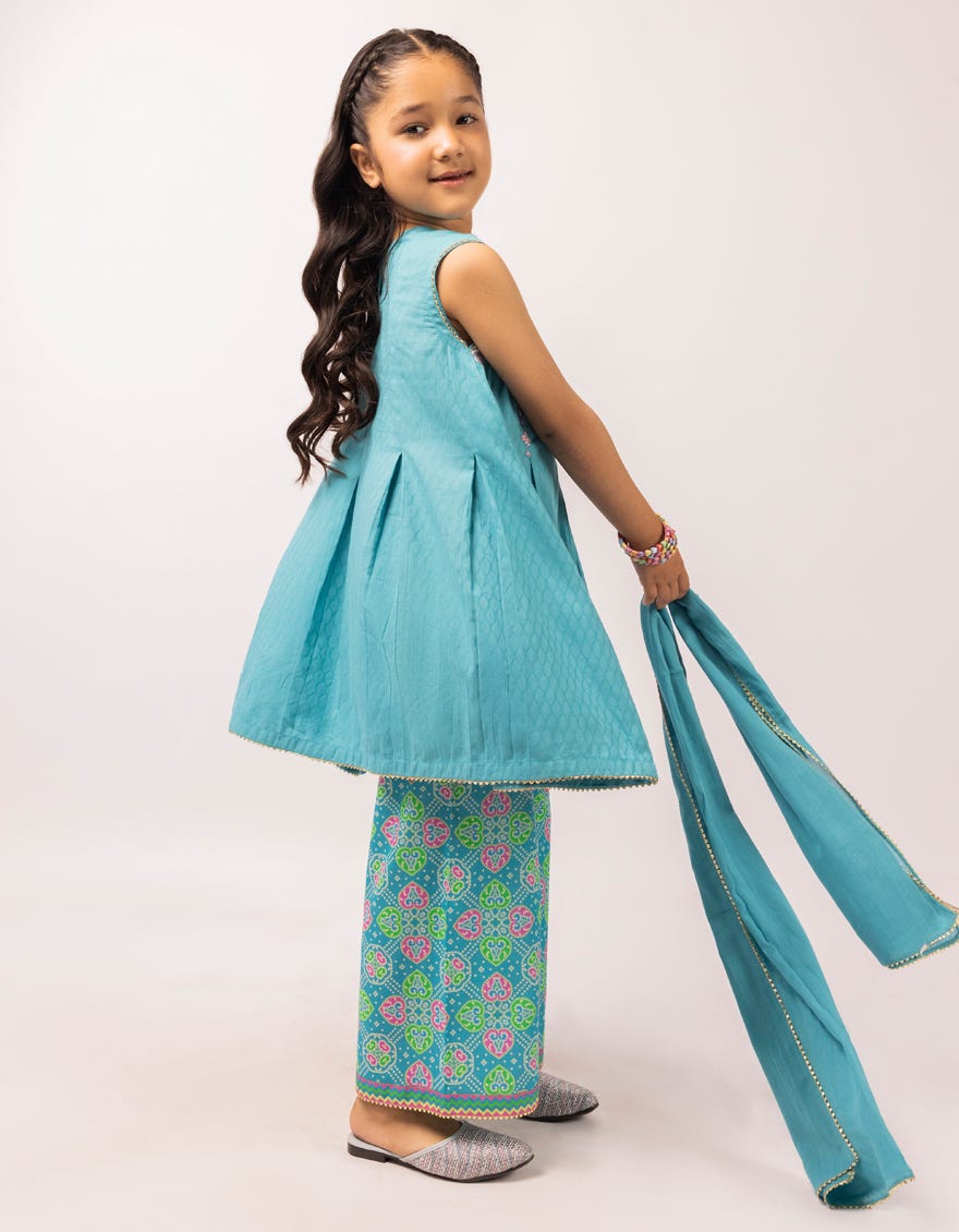 • Ready to Wear / BLUE DOBBY EMBROIDERED STITCHED 3PC