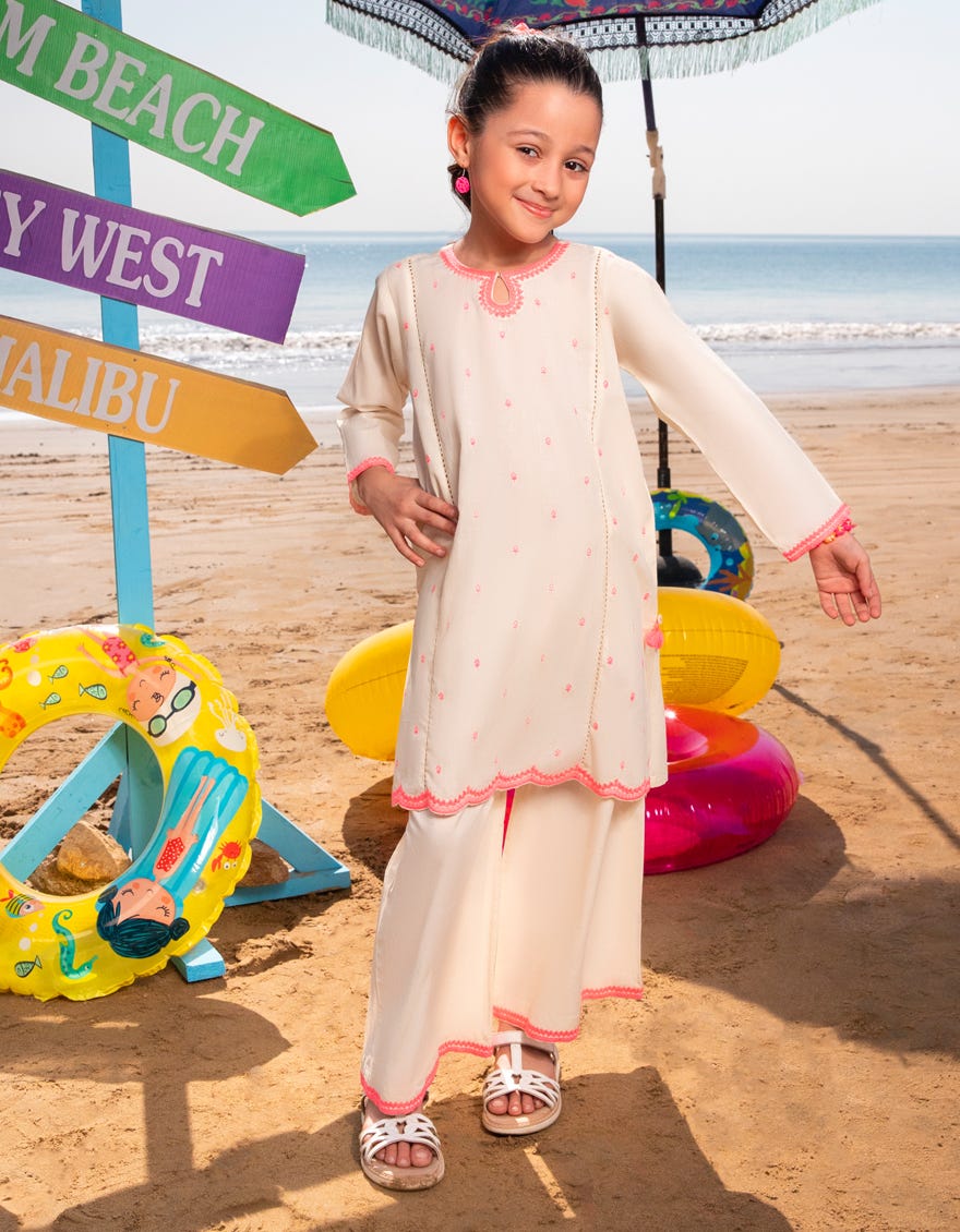 • Ready to Wear / OFF WHITE DOBBY EMBROIDERED 2PC | JGKL-S-JGST-25-5610