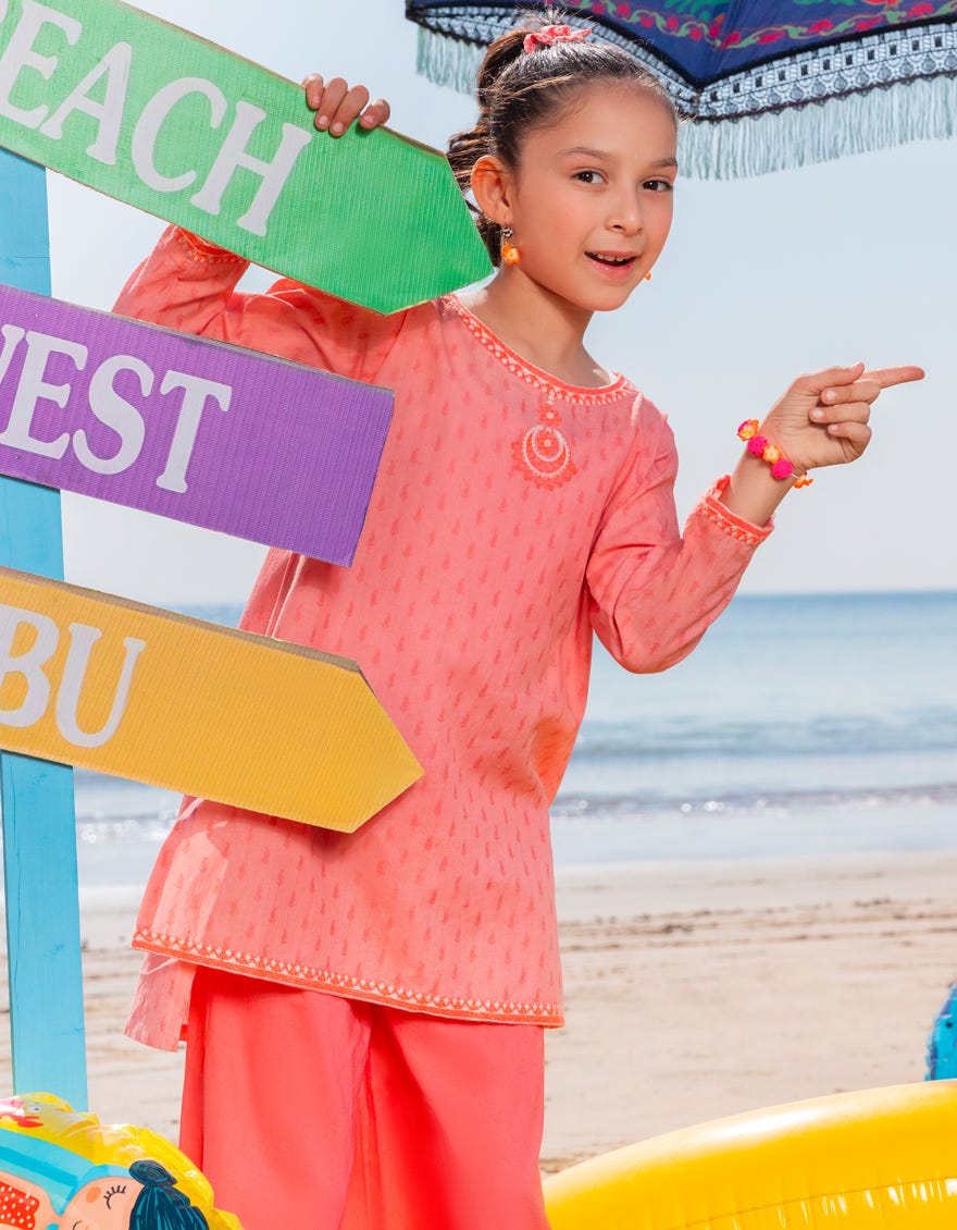 PEACH DOBBY EMBROIDERED 2PC | JGKL-S-JGST-25-5611