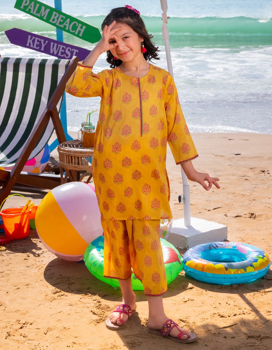 YELLOW LAWN PRINTED 2PC | JGKL-S-JGST-25-5636