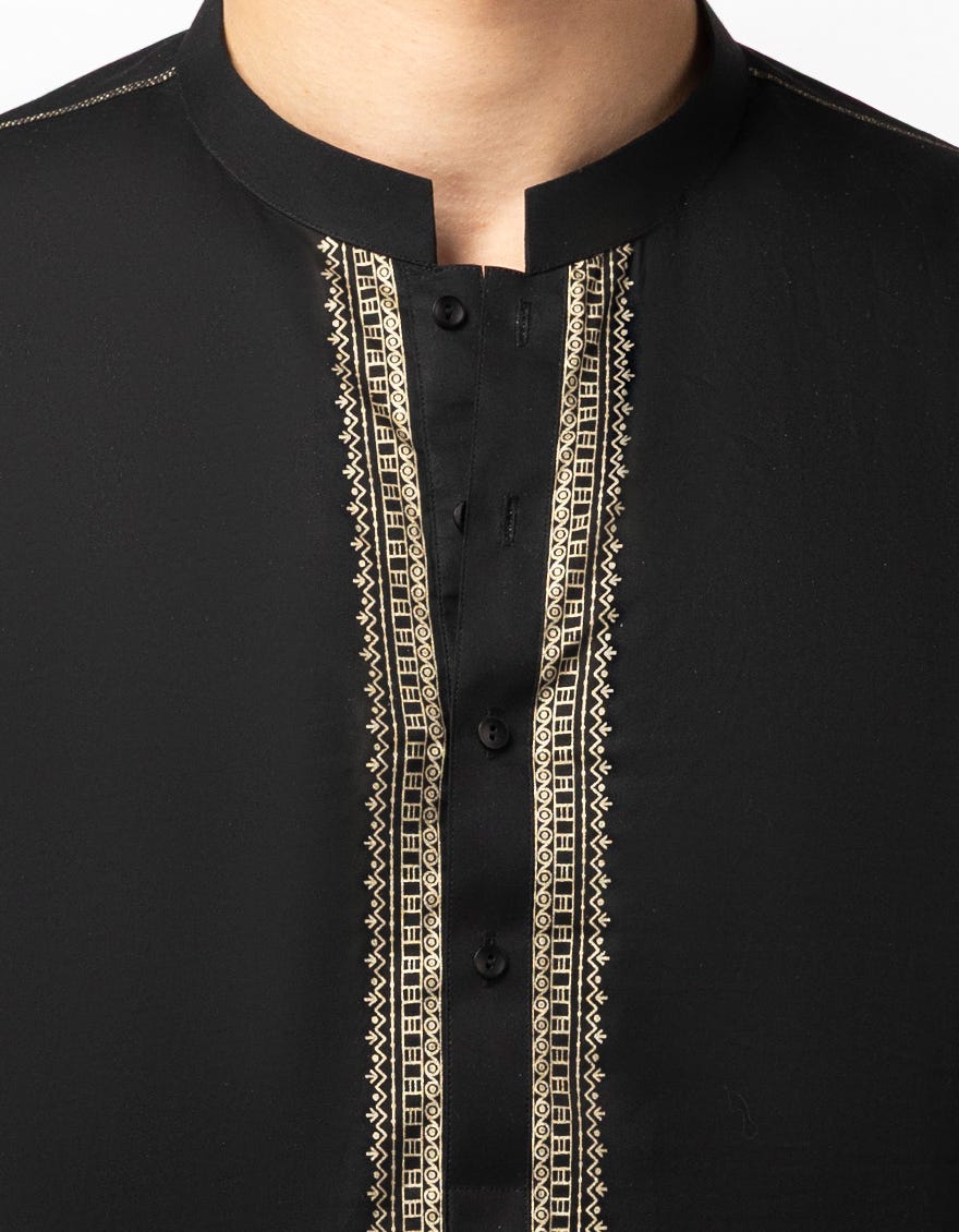 BLACK COTTON SEMI-FORMAL KURTA