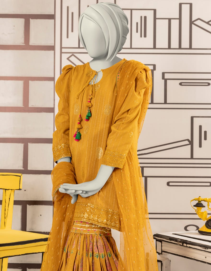 OCHRE TEXTURED EMBROIDERED 3PC STITCHED