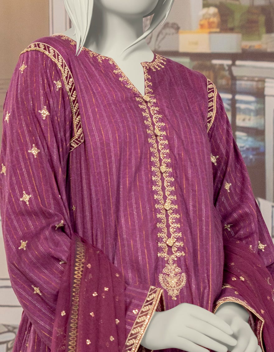 PURPLE TEXTURED EMBROIDERED 3PC STITCHED