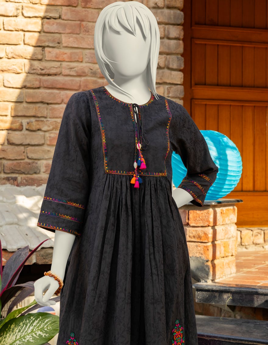 BLACK TEXTURED EMBROIDERED 2PC | JGK-S-JTST-25-412