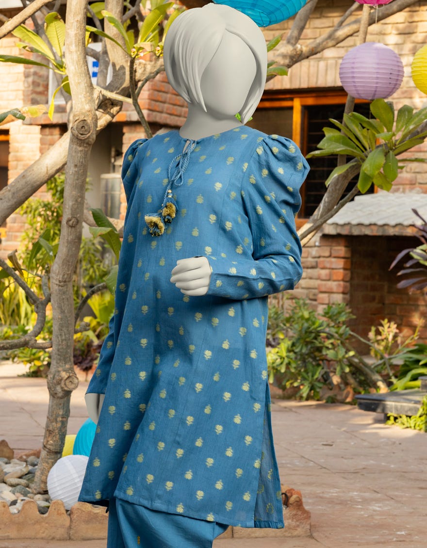 BLUE JACQUARD EMBROIDERED 2PC | JGK-S-JTST-25-423