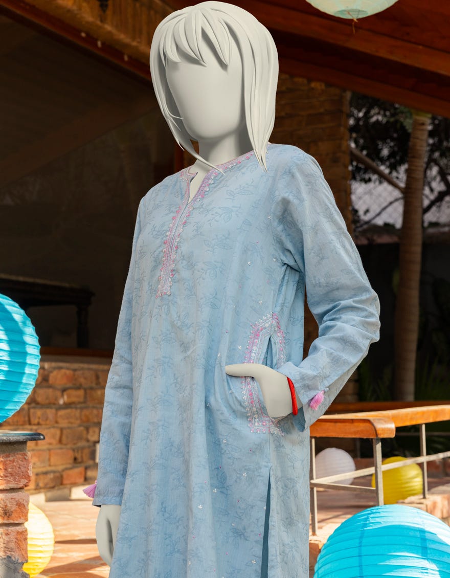 BLUE TEXTURED EMBROIDERED 2PC | JGK-S-JTST-25-407