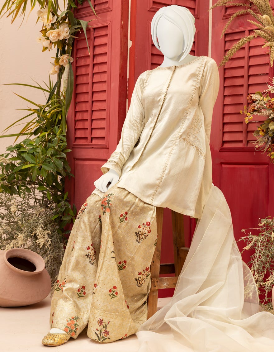 Collection Type: Embroidered Shirts With Digital & Foil Printed Trousers & Organza Dupatta