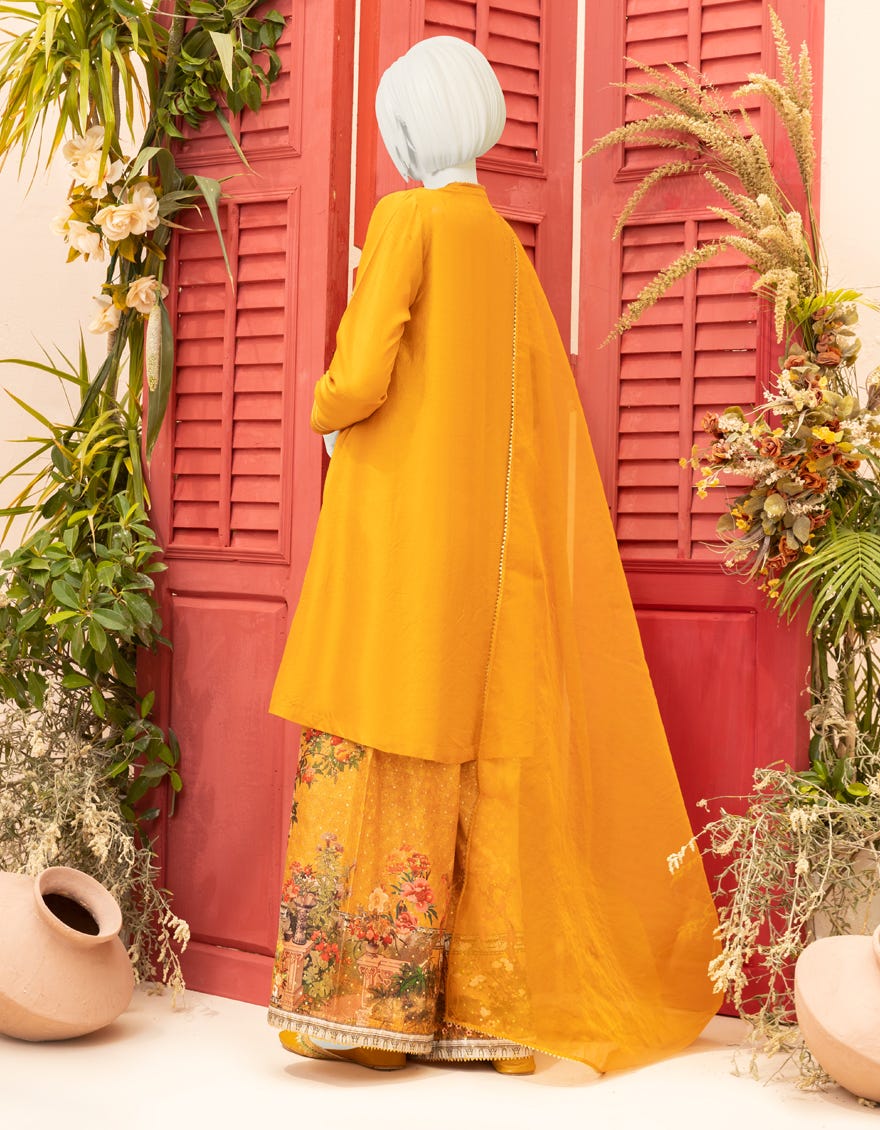 Collection Type: Embroidered Shirts With Digital & Foil Printed Trousers & Organza Dupatta
