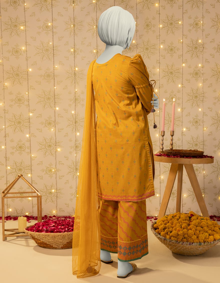 MUSTARD LAWN PASTE PRINTED 3PC STITCHED