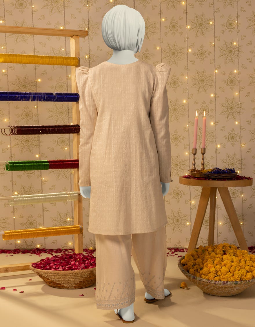 • Ready to Wear / OFF WHITE DOBBY EMBELLISHED 2PC STITCHED