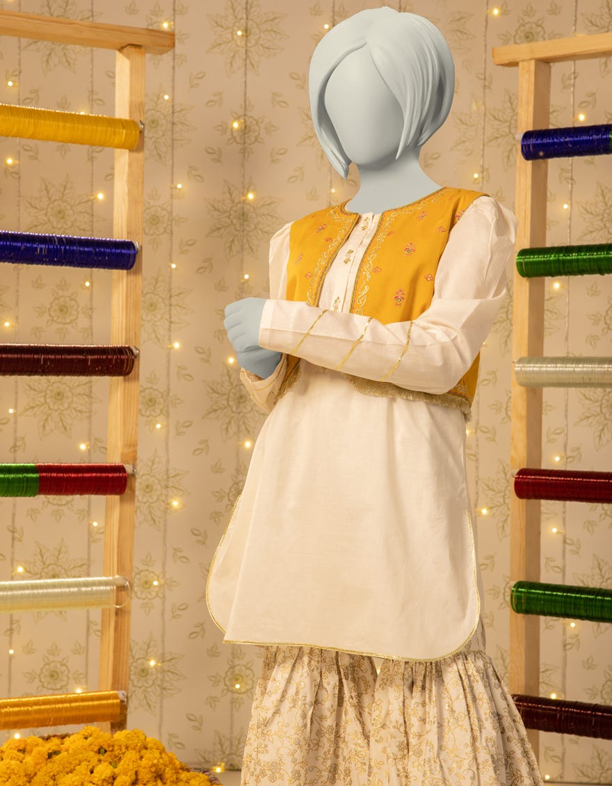 Collection: Block Printed Shirt & Trouser With Embroidered Koti