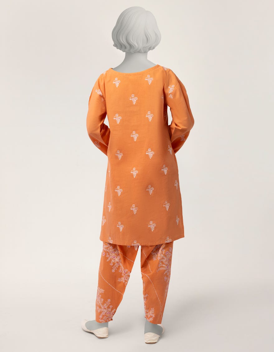 ORANGE LAWN PASTE PRINTED STITCHED 2PC