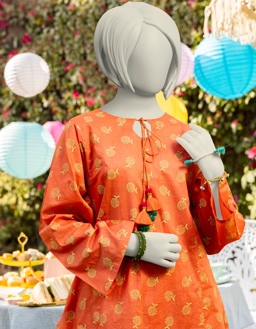ORANGE LAWN PRINTED 2PC | JGK-S-JTST-25-418