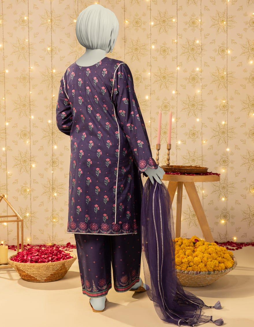 PURPLE LAWN PASTE PRINTED 3PC STITCHED