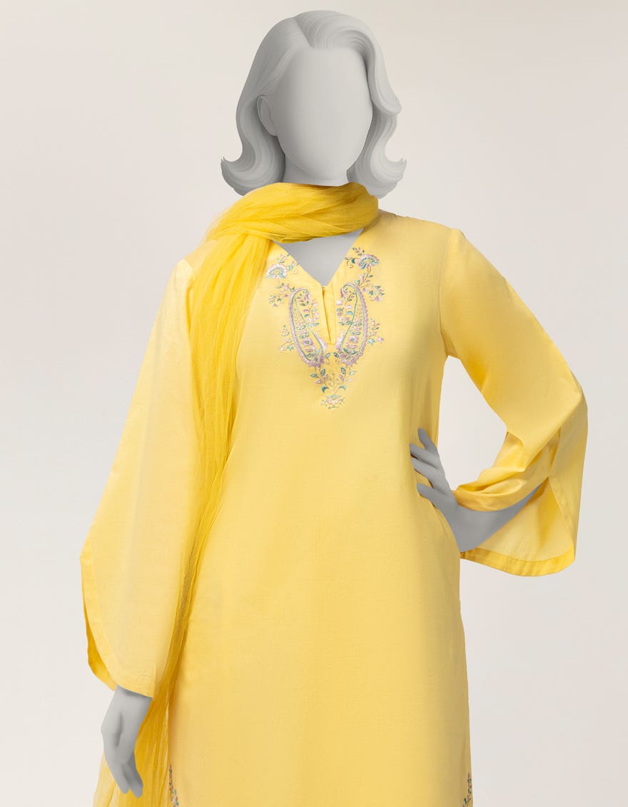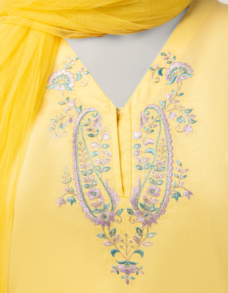 YELLOW LAWN EMBROIDERED 3PC STITCHED