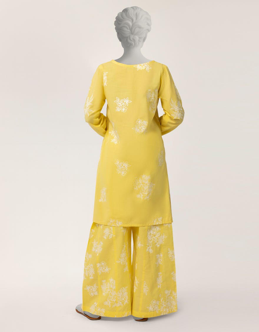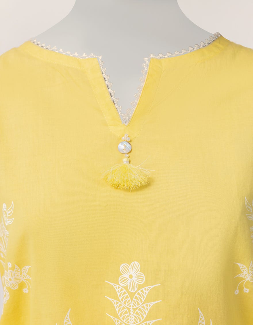 YELLOW LAWN PASTE PRINTED 2PC STITCHED