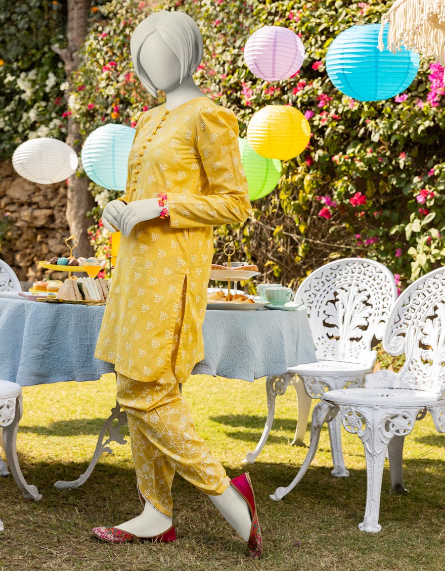 YELLOW LAWN PRINTED 2PC | JGK-S-JTST-25-416
