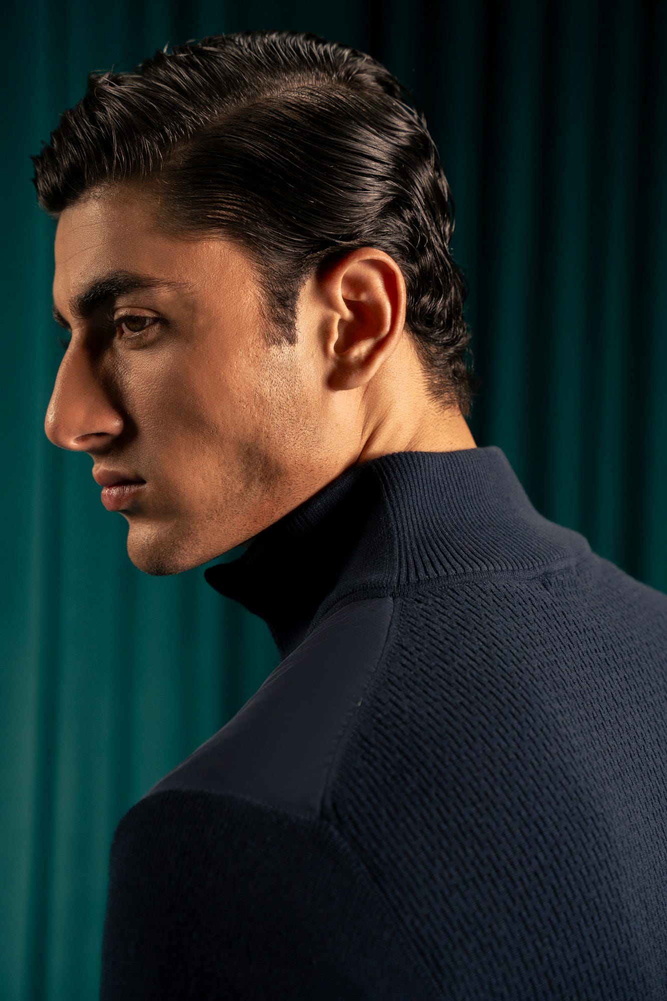 • Jackets & Sweaters / NAVY COTTON HI-FASHION JACKET | CC-SWT-0025