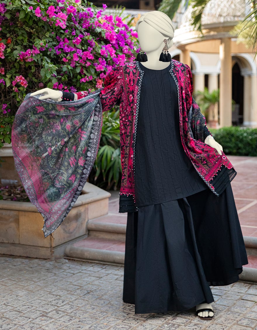 BLACK LAWN EMBROIDERED UNSTITCHED 3PC