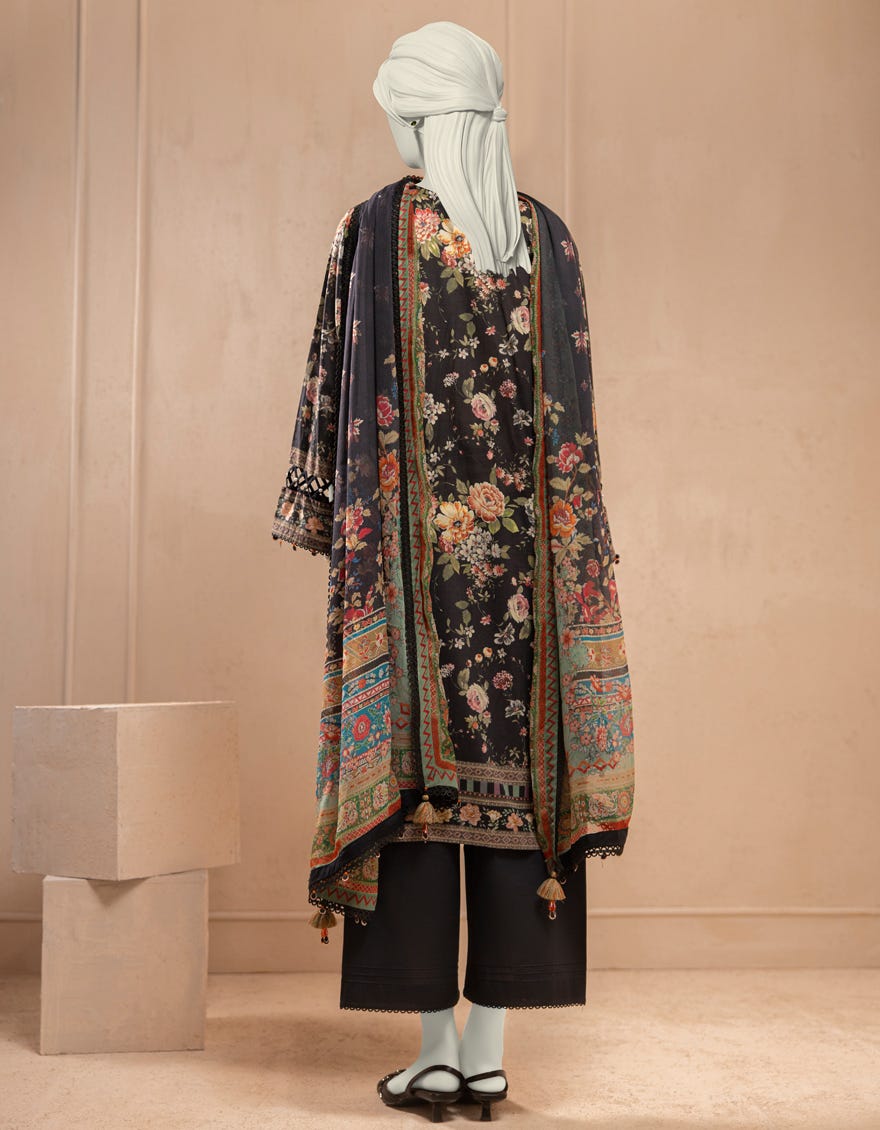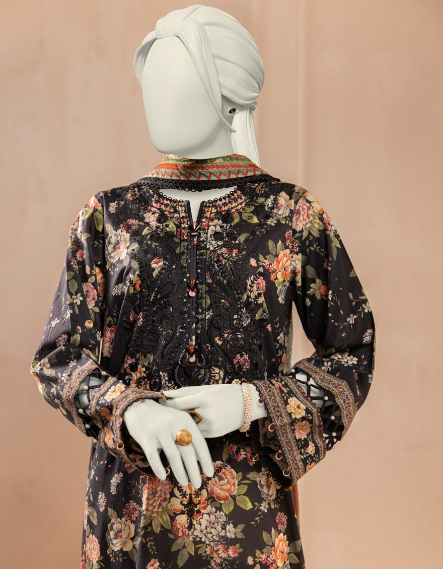 BLACK LAWN EMBROIDERED UNSTITCHED 3PC