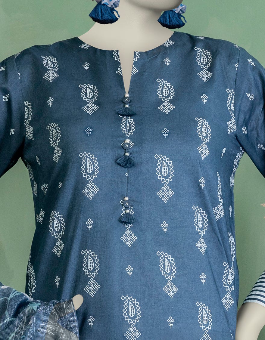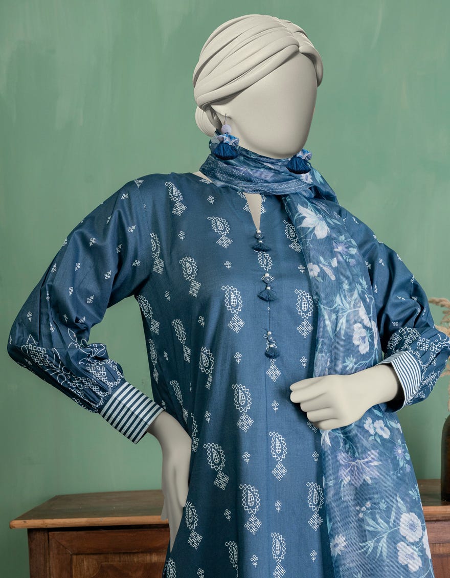 BLUE LAWN PASTE PRINTED UNSTITCHED 3PC