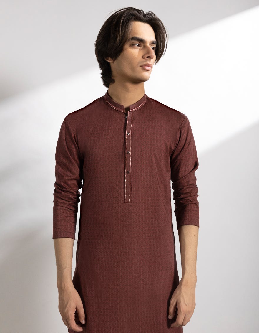 • Formals Collection / MAROON COTTON SEMI-FORMAL KURTA