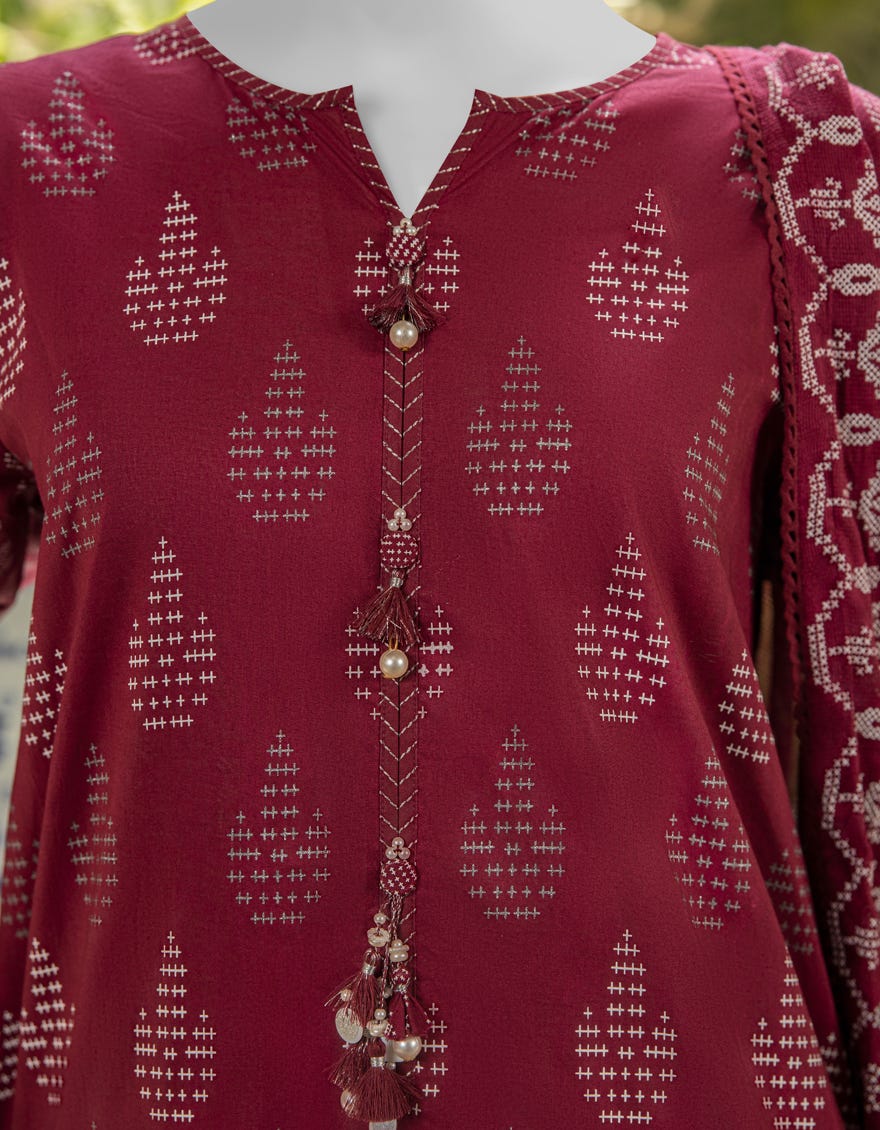 MAROON LAWN PASTE PRINTED UNSTITCHED 3PC