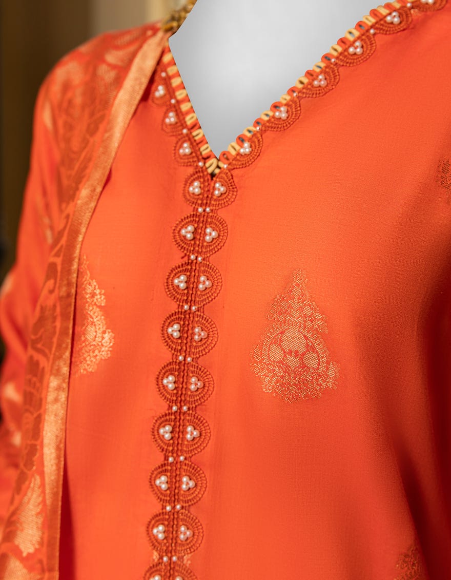 ORANGE DYED JACQUARD UNSTITCHED 3PC