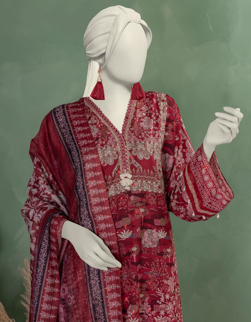 RED LAWN EMBROIDERED UNSTITCHED 3PC