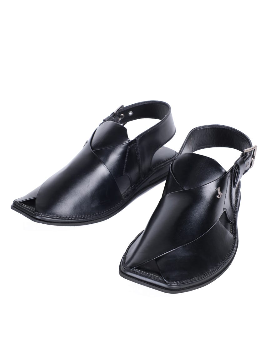 SHINY BLACK PLAIN PESHAWARI SANDALS