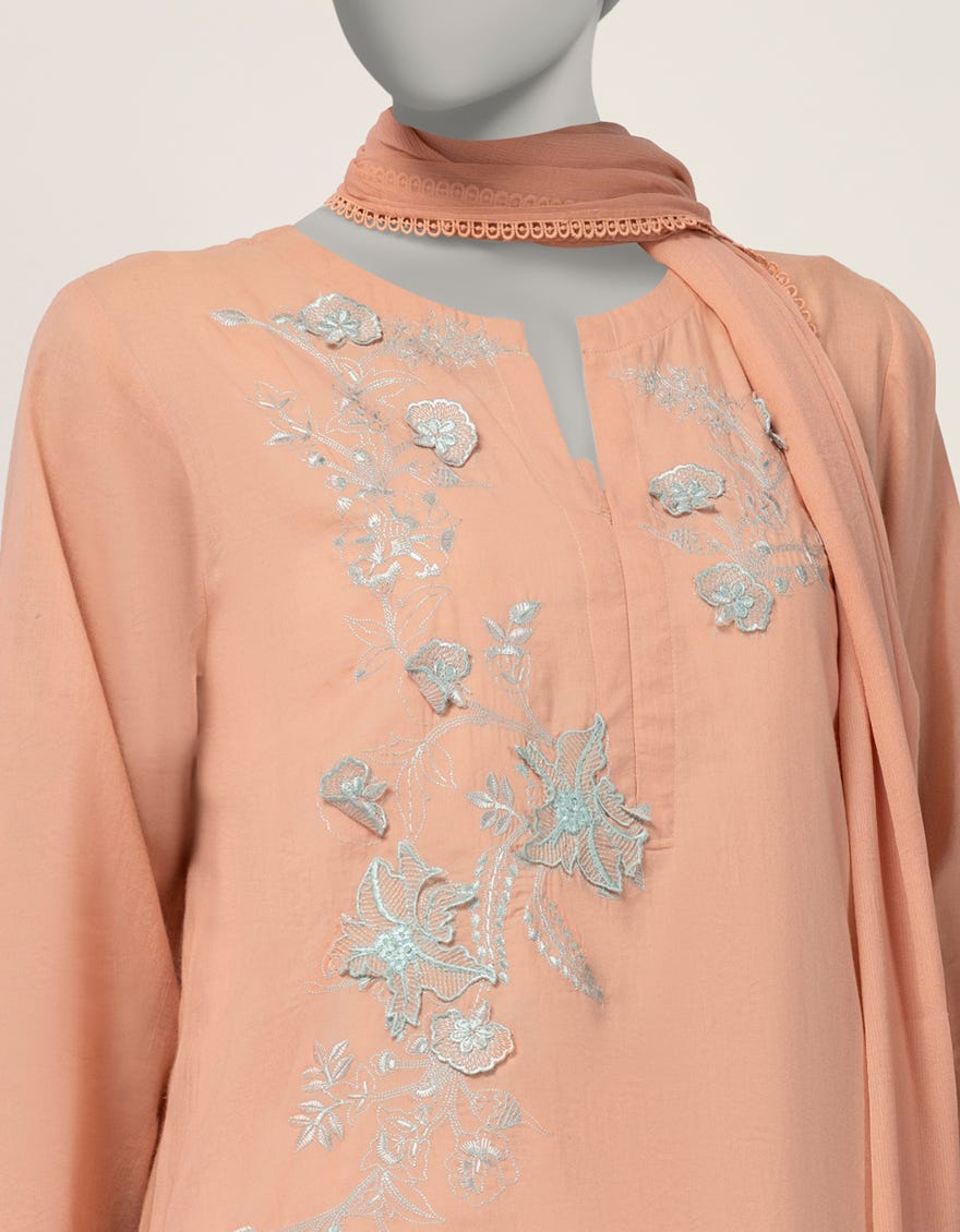PINK DOBBY EMBROIDERED STITCHED 3PC