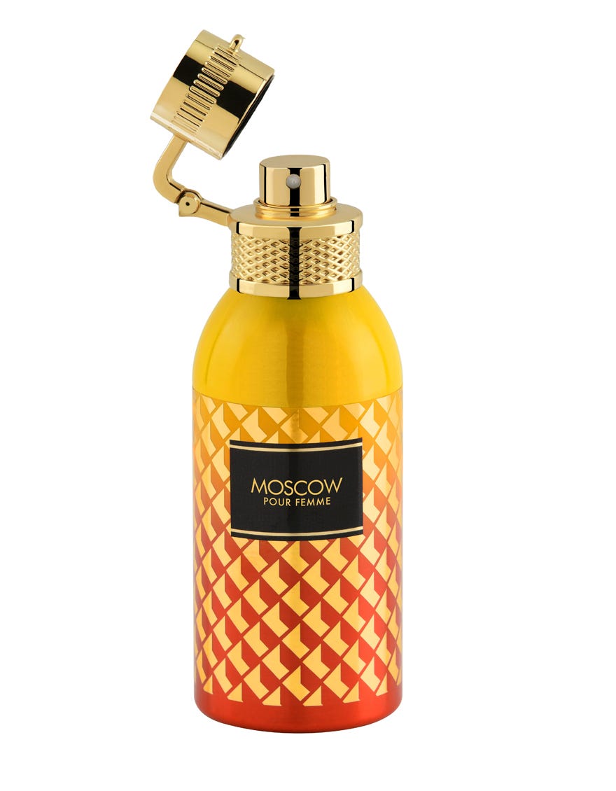 To prolong this fragrance, Spray MOSCOW Pour Femme by J.fragrances onto pulse points (on wrists, behind ears, and on the neck).