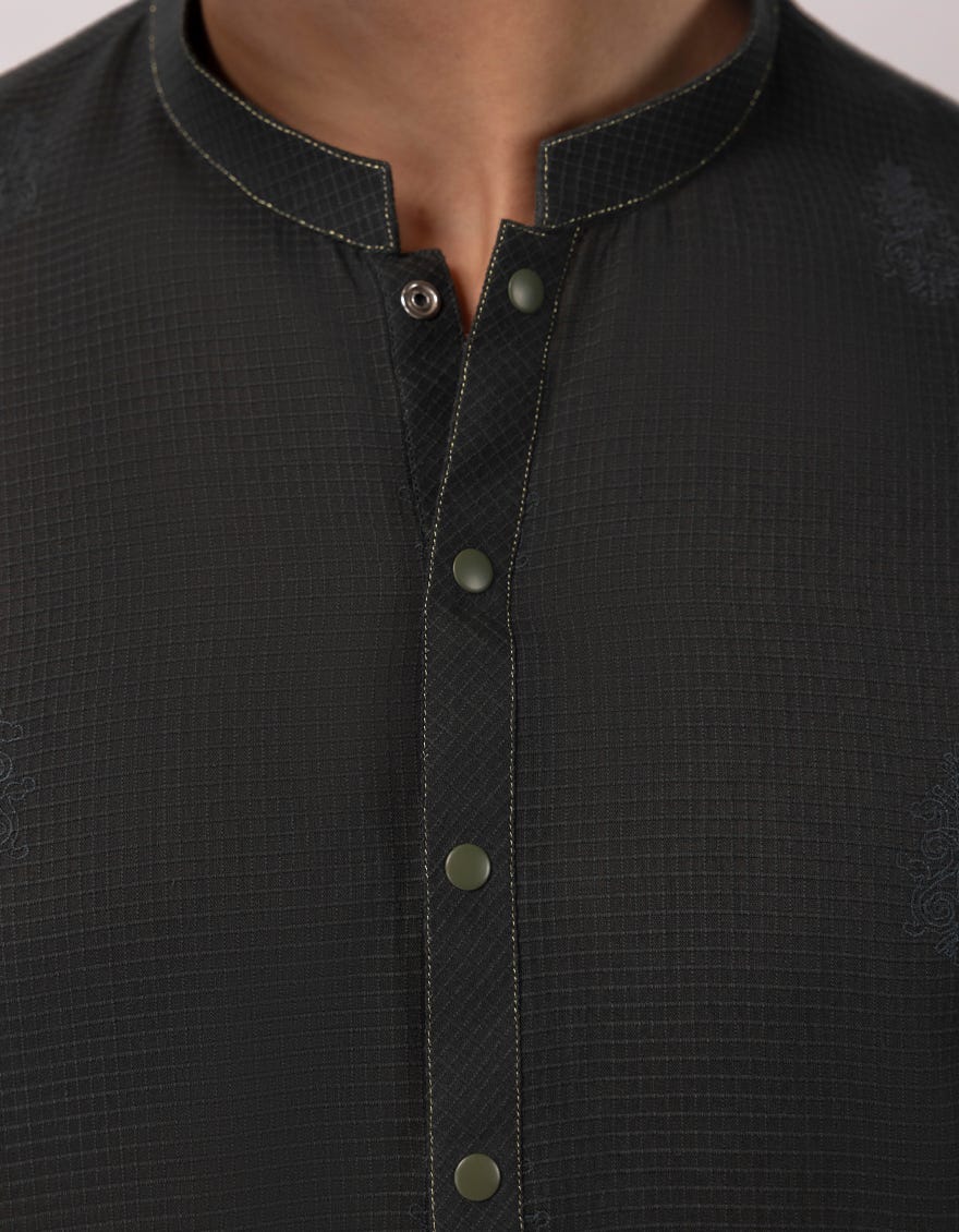 DARK GREEN COTTON SEMI-FORMAL KURTA TROUSERS