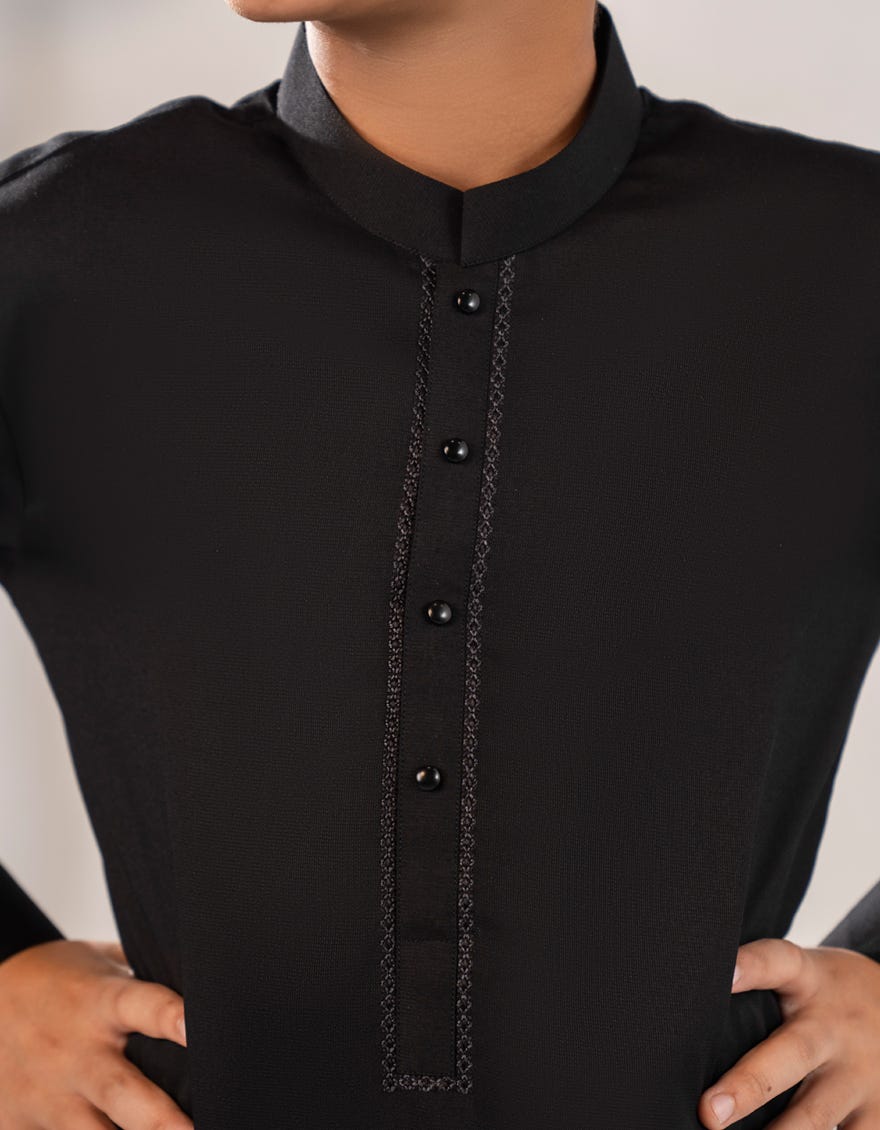| Short Description | Made for the modern young man, this Black Blended Kameez Shalwar is a perfect blend of style and comfort. Its simple yet elegant design makes it suitable for a range of occasions, ensuring that your little one looks his best. |