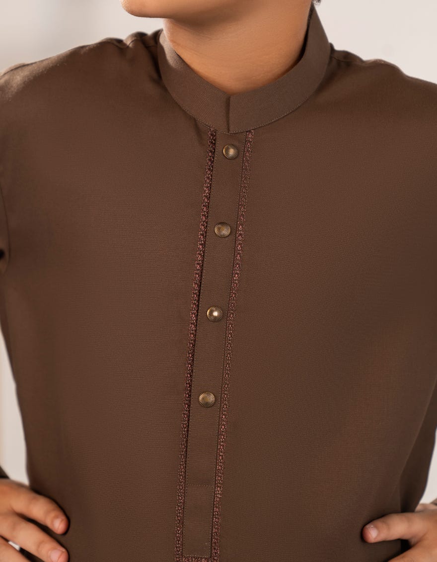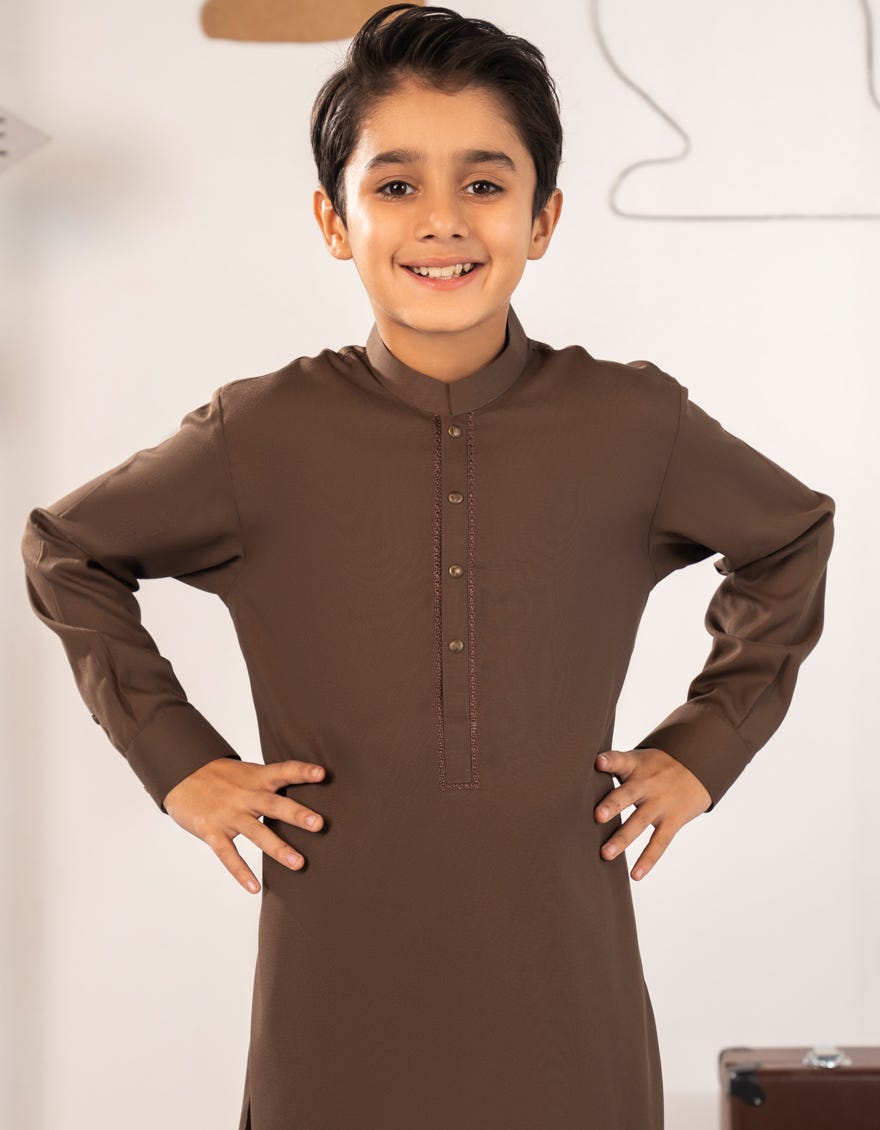 | Short Description | Made for the modern young man, this Brown Blended Kameez Shalwar is a perfect blend of style and comfort. Its simple yet elegant design makes it suitable for a range of occasions, ensuring that your little one looks his best. |