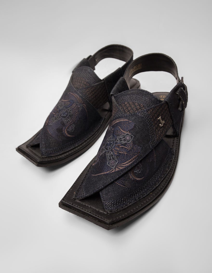 DENIM BLACK EMBROIDERED PESHAWARI SANDALS